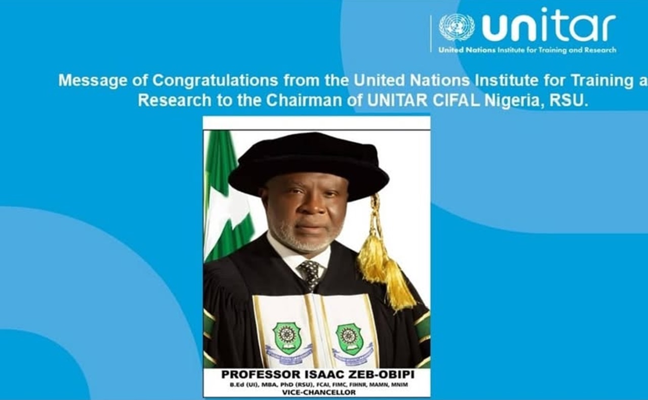 The United Nations Institute for Training and Research (UNITAR) has felicitated the Vice Chancellor of Rivers State University (RSU), Professor