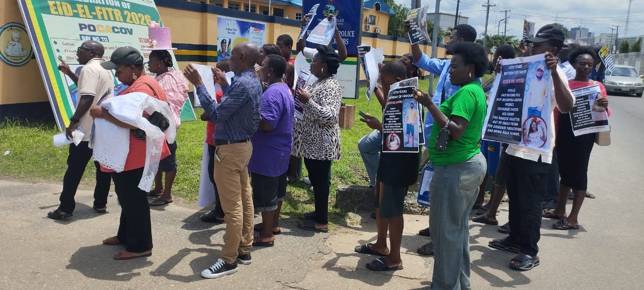 The family of Miss Favour Oluwaseyi has staged a protest at the Rivers State Police Command Headquarters in Port Harcourt,